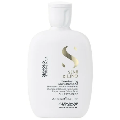 Les cheveux conservent la luminosité d'un diamant pour un effet durable et spectaculaire grâce au traitement capillaire Diamond de la ligne Semi di Lino.