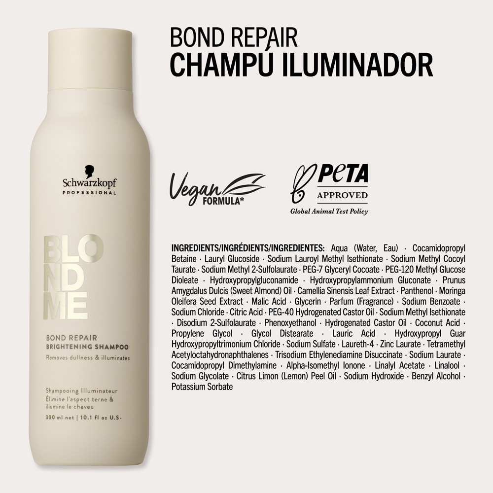 BOND REPAIR TECHNOLOGY crea una sofisticata rete composta da due tipi di ponti: legami ionici e idrogeno, che lavorano insieme per promuovere una struttura del capello robusta ma flessibile. In combinazione con l'Olio di Mandorle Nutriente, le sue formule proteggono i capelli biondi da secchezza, fragilità e porosità. Polimeri leggeri, in combinazione con l'estratto di Tè Bianco, noto per le sue proprietà antiossidanti ed energizzanti, creano una barriera che imita l'effetto della foglia di loto proteggendo attivamente la cuticola dei capelli biondi dalle aggressioni esterne, come gli agenti inquinanti, che possono far apparire il biondo spento e senza vita.