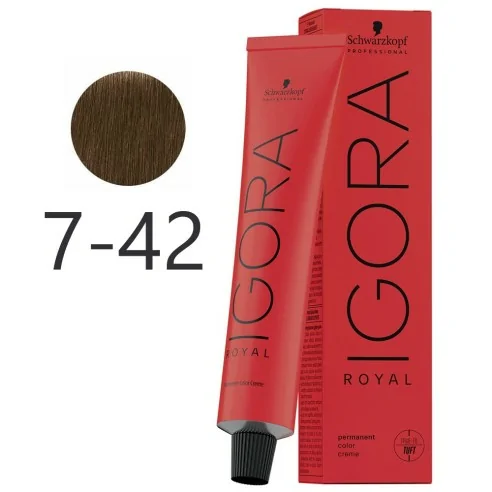 Schwarzkopf - Tintura Permanente Igora Royal 7-42 Biondo Medio Beige Fumo 60 ml