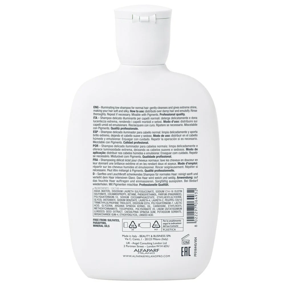 AQUA (WATER), SODIUM C14-16 OLEFIN SULFONATE, DISODIUM LAURETH SULFOSUCCINATE, COCAMIDOPROPYL BETAINE, PHENOXYETHANOL, GLYCOL DISTEARATE, PARFUM (FRAGRANCE), POLYQUATERNIUM-10, SODIUM COCOAMPHOACETATE, ETHYLHEXYLGLYCERIN, SODIUM BENZOATE, LAURETH-4, LAURETH-2, PEG/PPG-120/10 TRIMETHYLOLPROPANE TRIOLEATE, DISODIUM EDTA, POLYQUATERNIUM-7, LACTIC ACID, GLYCERIN, ARGANIA SPINOSA KERNEL OIL, CARNOSINE, ETHYLHEXYL METHOXYCINNAMATE, TOCOPHEROL, POLYSORBATE 20, LINUM USITATISSIMUM (LINSEED) SEED EXTRACT, CAESALPINIA SPINOSA GUM, POTASSIUM SORBATE, BIOSACCHARIDE GUM-4, ETHOXYDIGLYCOL, LINSEED ACID.